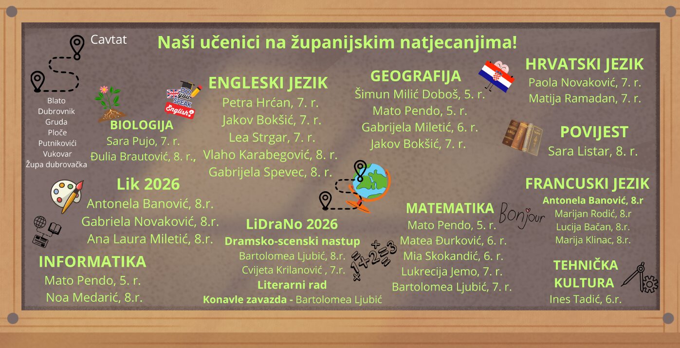 .REPUBLIKA HRVATSKAOsnovna škola Cavtat KLASA: 112-02/26-01/1URBROJ: 2117-30-02-26-1Cavtat, 21. siječnja 2026. Temeljem članka 107. Zakona o odgoju i obrazovanju u osnovnoj i srednjoj školi (NN 87/08, 86/09, 92/10, 105/10, 90/11, 5/12, 16/12, 86/12, 94/13, 152/14,...
